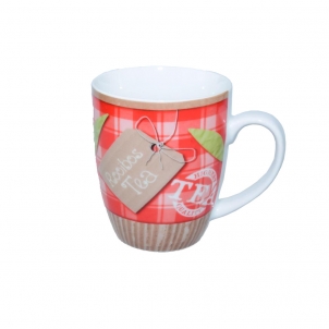 Porcelanowy kubek do herbaty z motywem biało-czerwonej kratki z papierową zawieszką Rooibos Tea. Doskonale sprawdzi się w mieszkaniu każdego konesera herbaty rooibos i nie tylko.