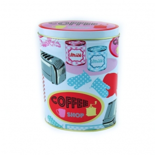 Metalowa puszka dekoracyjna owalna przeznaczona do przechowywania kawy, herbaty itp.