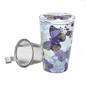 Porcelanowy kubek z zaparzaczem ze stali szlachetnej i porcelanową przykrywką. Kubek z podwójną ścianką dzięki której długo utrzymuje temperaturę.